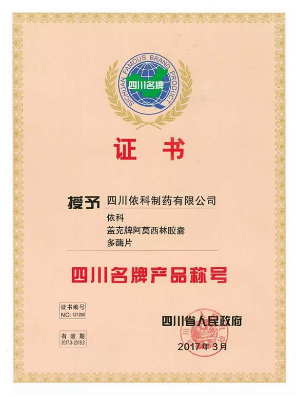 公司高度重视品牌战略,依法注册了“盖克”、“蜀中”、“三星堆”、“阿莫锋”、“益善源”、“蓉通”、“mk体育app官网下载入口”等108件注册商标,1999年“盖克”、2003年“蜀中”、2007年“三星堆”被认定为德阳市知名商标,2001年“盖克”、2004年“蜀中”被认定为四川省著名商标, 2008年“盖克”商标被国家工商行政管理总局认定为“中国驰名商标”。2017年3月,公司盖克牌、mk体育app官网下载入口牌阿莫西林胶囊和多酶片被四川省人民政府授予四川名牌产品称号。2016年,公司实现营业收入66373万元,利税7600万元;2017年,公司实现营业收入75045万元,利税7572万元。公司2017年被命名为德阳市第七批院士专家工作站,2016-2018连续三年被德阳市人民政府确定为重点龙头企业。